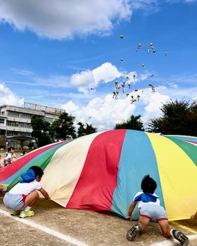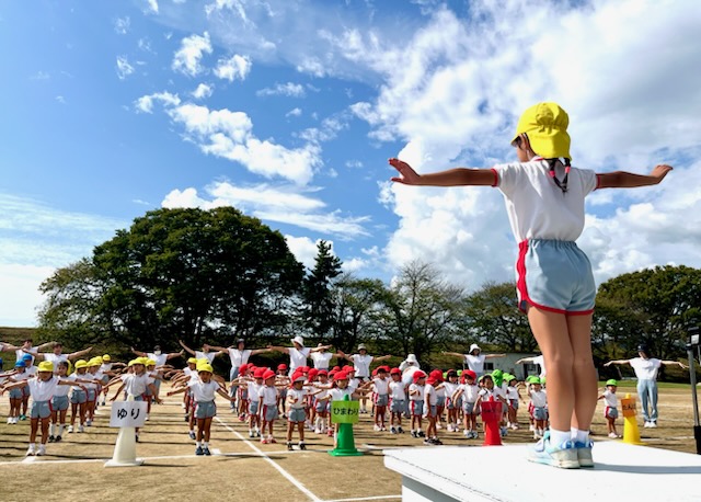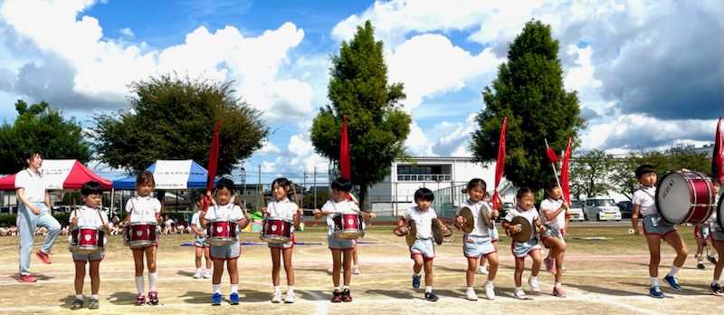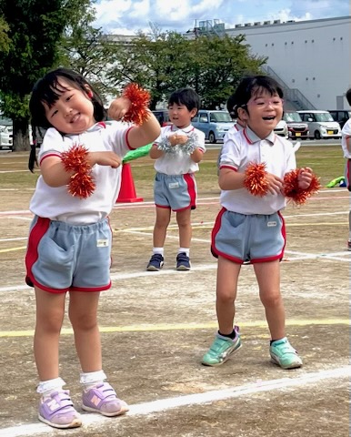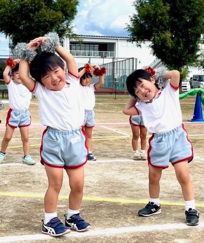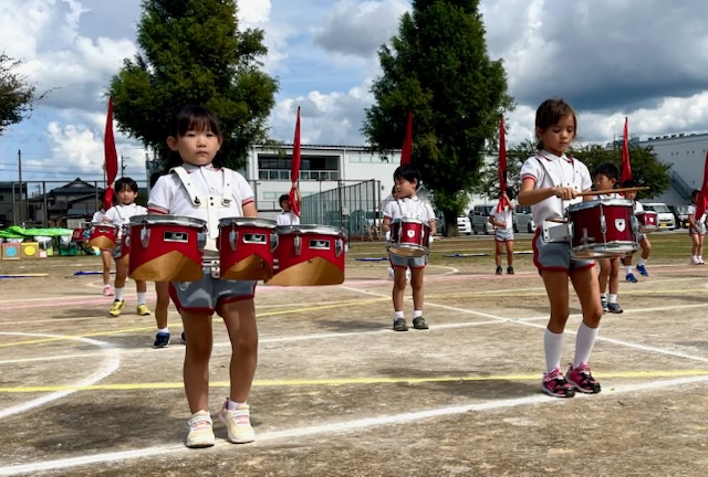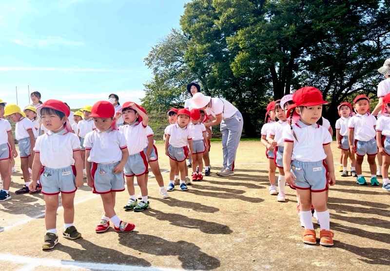 リハーサルでは、本番に見ることのできない学年の色々な演技もしっかりと見ることが出来ました。来年は自分たちが・・・。そんな見通しを持たせる意味もあります。見せあいっこすることで、よりよい緊張感が生まれ、本番の運動会が更に楽しみになった子ども達でした。広い短大グラウンドは施設員さんが夏前から幼稚園の運動会に向けて何回も草を刈って下さって、これまでで一番のコンディションの状態です。