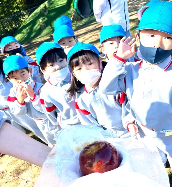 今年初 焼きリンゴにチャレンジ 年長さんがいただきました