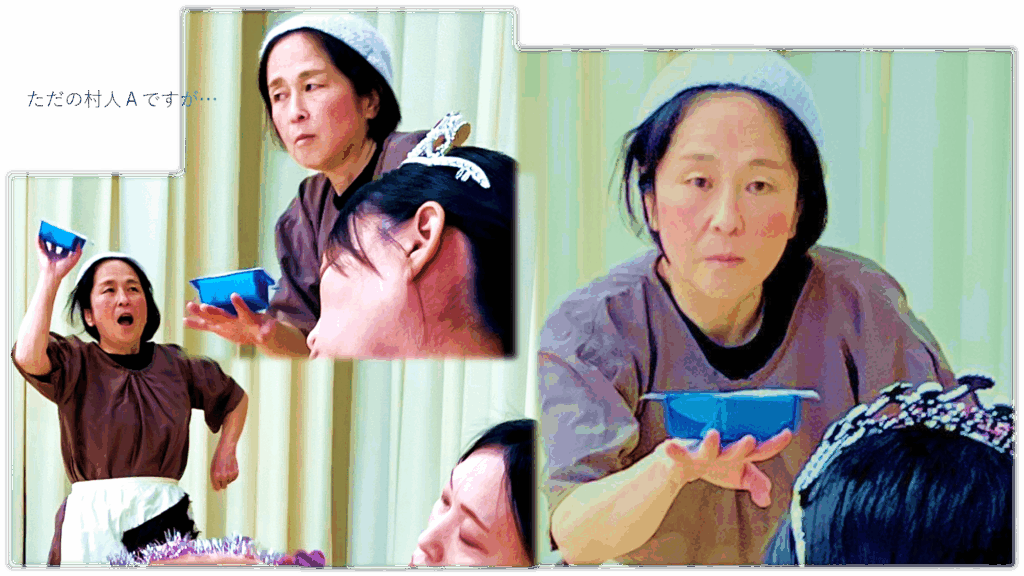 村人役の一人が土曜日に体調不良となり、本番は急きょ代役が舞台に立ちました。アドリブも入る中、ピンチヒッターと感じさせない役者ぞろいの幼稚園です。休んだ村人役Bは、リハーサルですでに大爆笑の名演技で、本番を職員全員が期待していただけに、「何かの機会に子ども達に(職員にも)!」を望む声が上がっています。