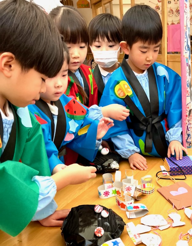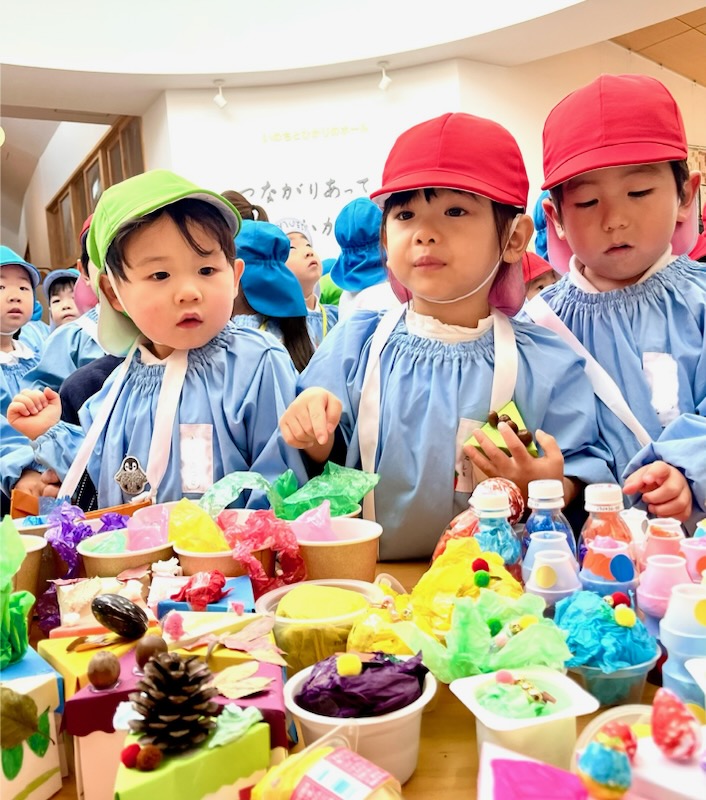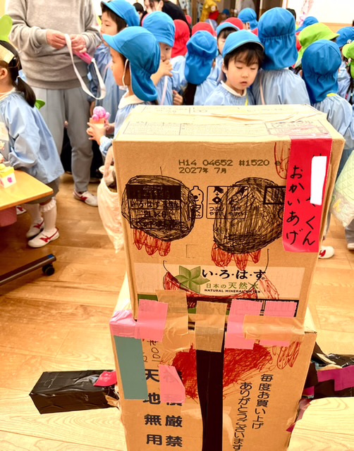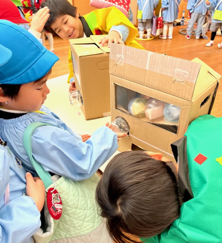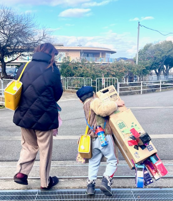 終業式の前日、大盛況だった今年のお店屋さんの店じまいクリアランスセールとなりました。会場のいのちとひかりのホールは年末の商業施設のような混雑ぶりでした。仁愛銀行の100円のお金を5枚のクラスもあれば、10枚のクラスも…。終盤、お店屋さんの小道具類も売りに出され、ロボットやイルカ、カメなどが300円で買い取られていきました。帰りのバスの椅子の隣に座るロボットや、大事に抱えられて帰るロボット。その様子は、作り手の友達の気持ちまでも抱えられているように見えました・・・。