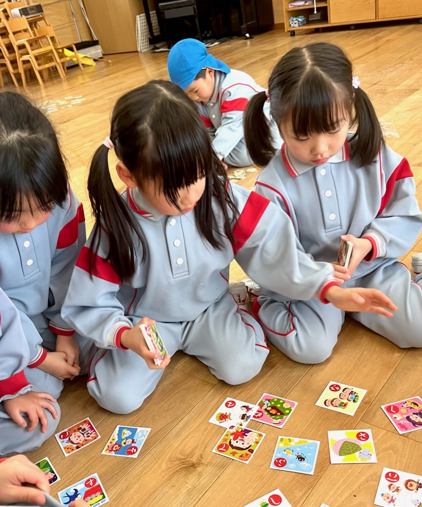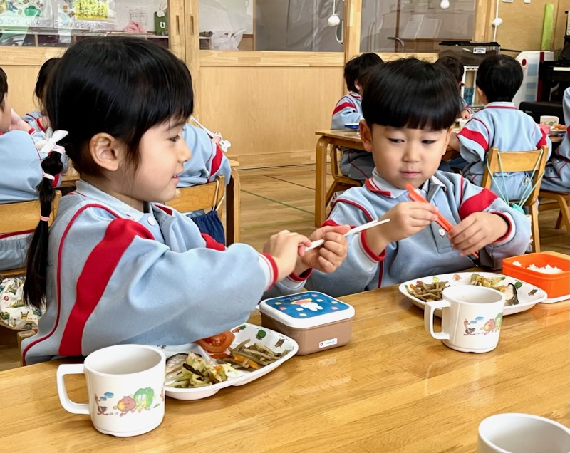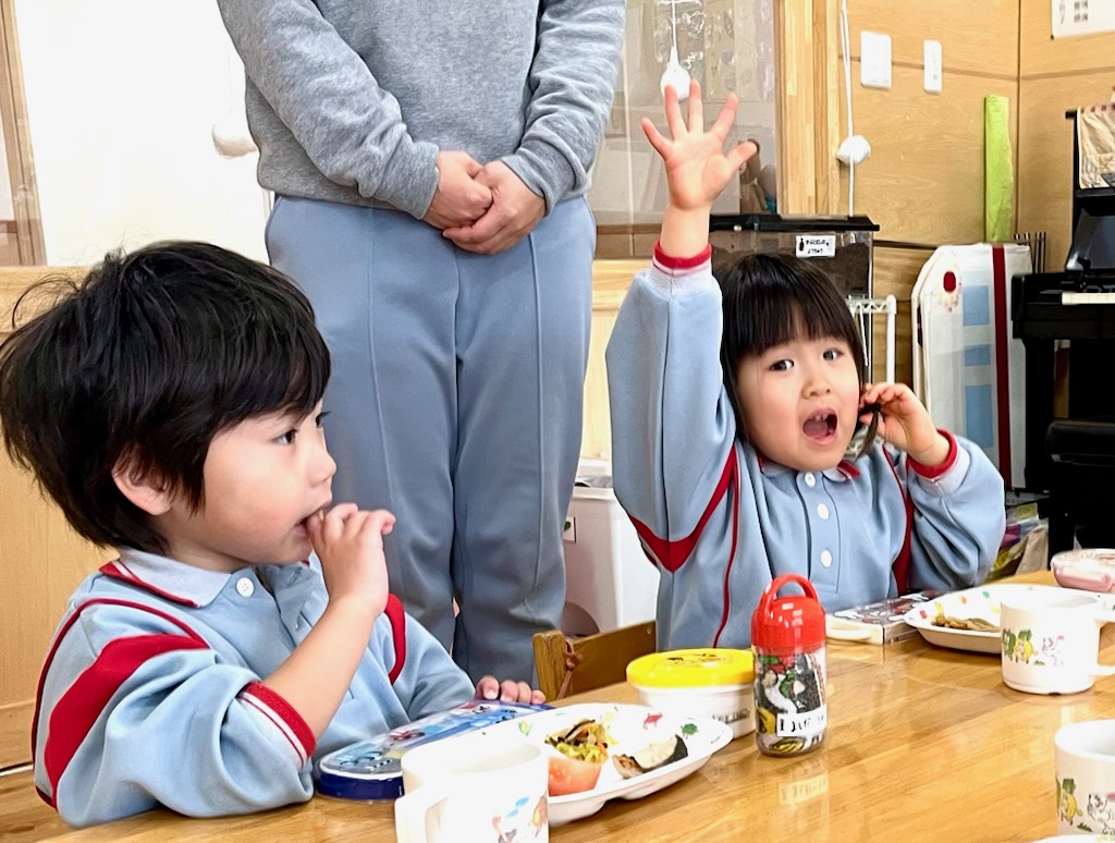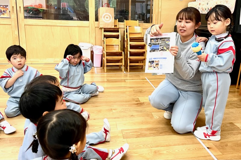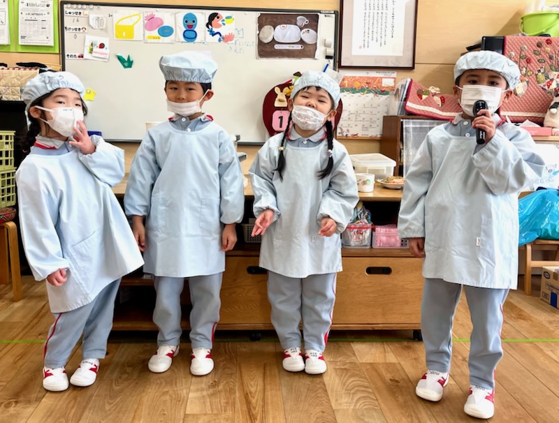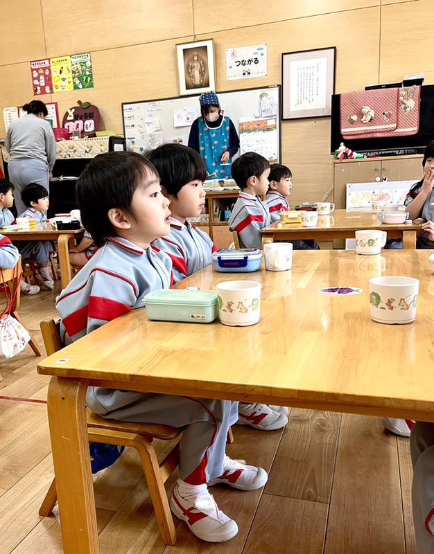 卒園式までの登園日は44日。豆まきの会、生活発表会、楽しいこと(ちょっぴり緊張・こわい)ことが沢山の3学期。休んで楽しいことが出来ないことがないように、手洗い・うがいなど予防に気を付けて3学期を過ごしましょうと話をしました。「おに」という言葉がでるだけで、体育館の中は少しピリッとしました。3学期は上の学年の部屋を見に行ったり、活動の様子を見たりと、次の学年への大切な準備期間です。年長は始業式の後、担任から小学校に向けての3学期の生活について、真剣に聞き入る様子から入学への期待が伝わってきました。