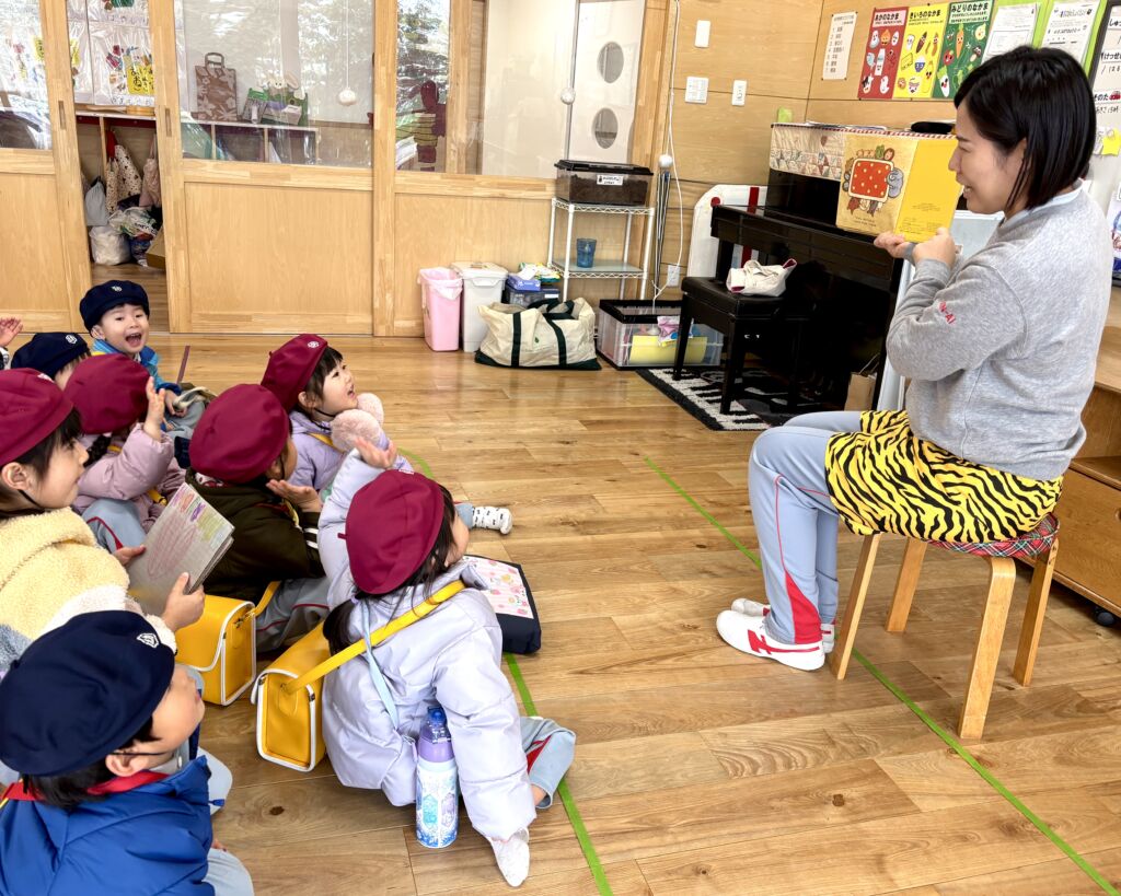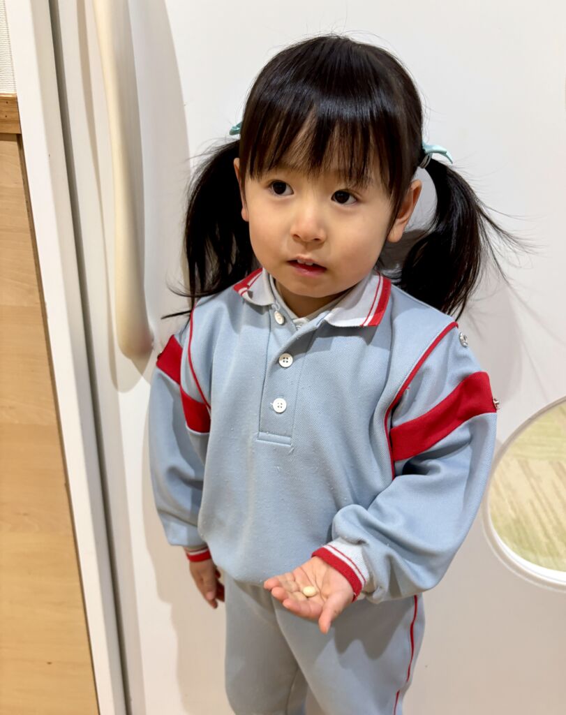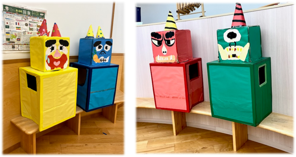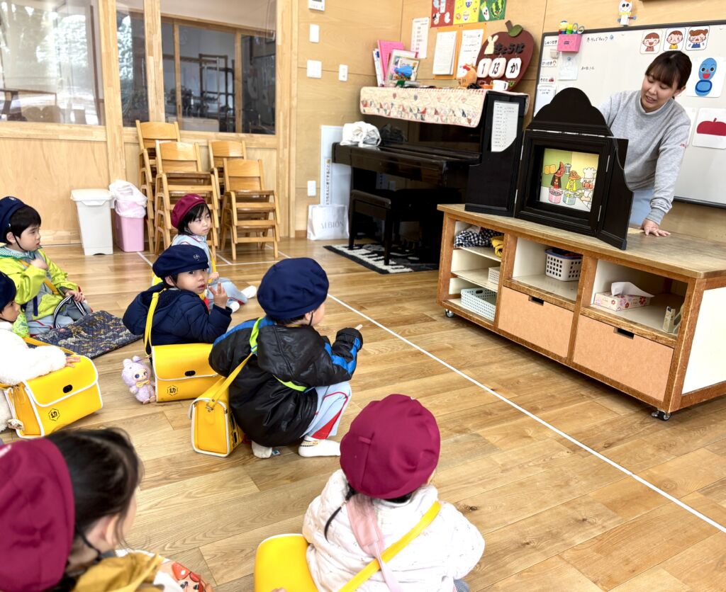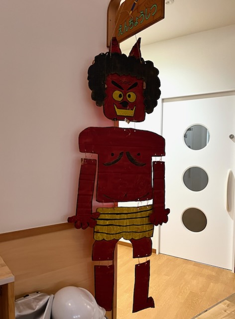 突然鬼が現れて、豆をまくわけではなく、好き嫌いや後片付け、自分の弱い心の鬼を退治しよう!!当日までの生活があっての豆まきです。そして、本番。怖くて泣いて、先生にしがみついてもとにかく鬼と対峙して、乗り切って成長します。