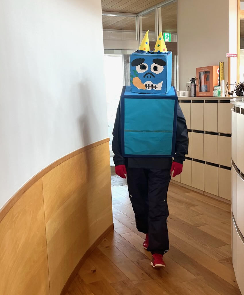 ついに年少クラスにも鬼が出ました。箱鬼バージョン!!でも、年少で箱鬼怖さ150%。担任が(言わなくてもいいのに)、おかたづけできてないとか、すききらいするとか、一人ひとりの弱い心をピンポイントで言うので、鬼がピンポイントに寄ってきて、それはもう大変でした。でもみんないい子になって欲しいからなんです。