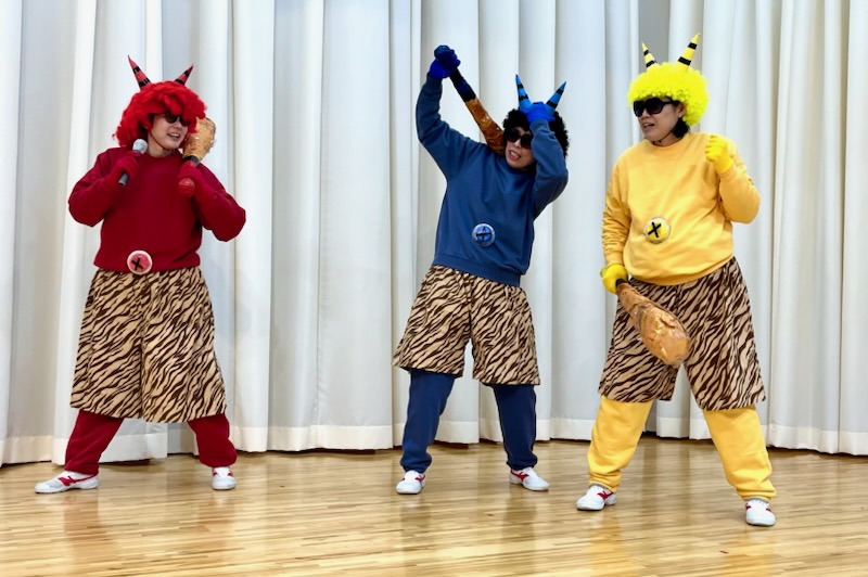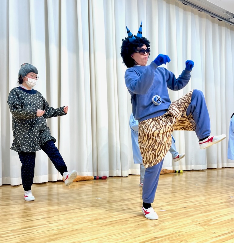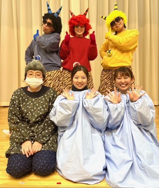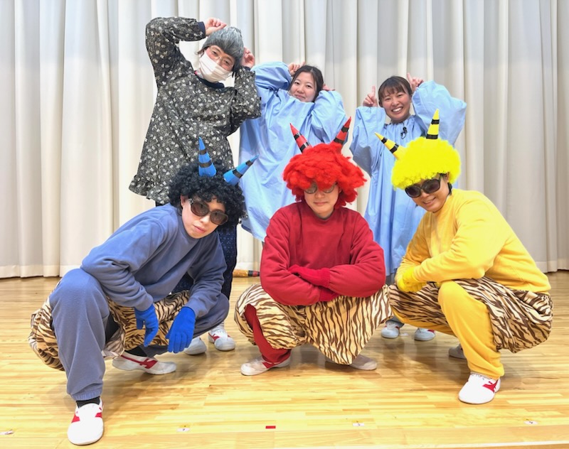 鬼気迫る 2026.01.28 行事 園長だより 29日(木)のまめまきの会を前に、先生方の鬼の劇も衣装を合わせた最終リハーサルを27日(火)の夕方に行いました。細かな立ち位置やタイミングなどを確認して本番に臨みます。 幼稚園のみんな まってろよ ヨロシク(元ヤン鬼より) 炒った豆にはかなわない 「鬼のパンツ」もヤンキーバージョン?? いつの時代のおばあちゃん??