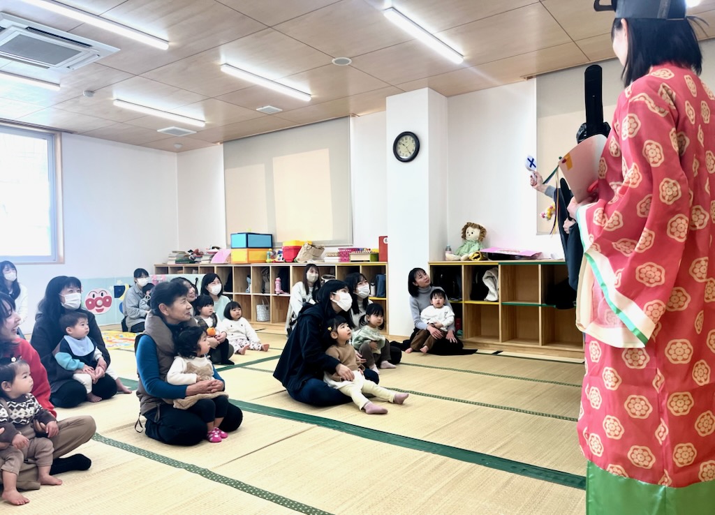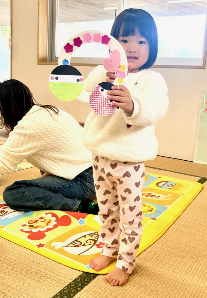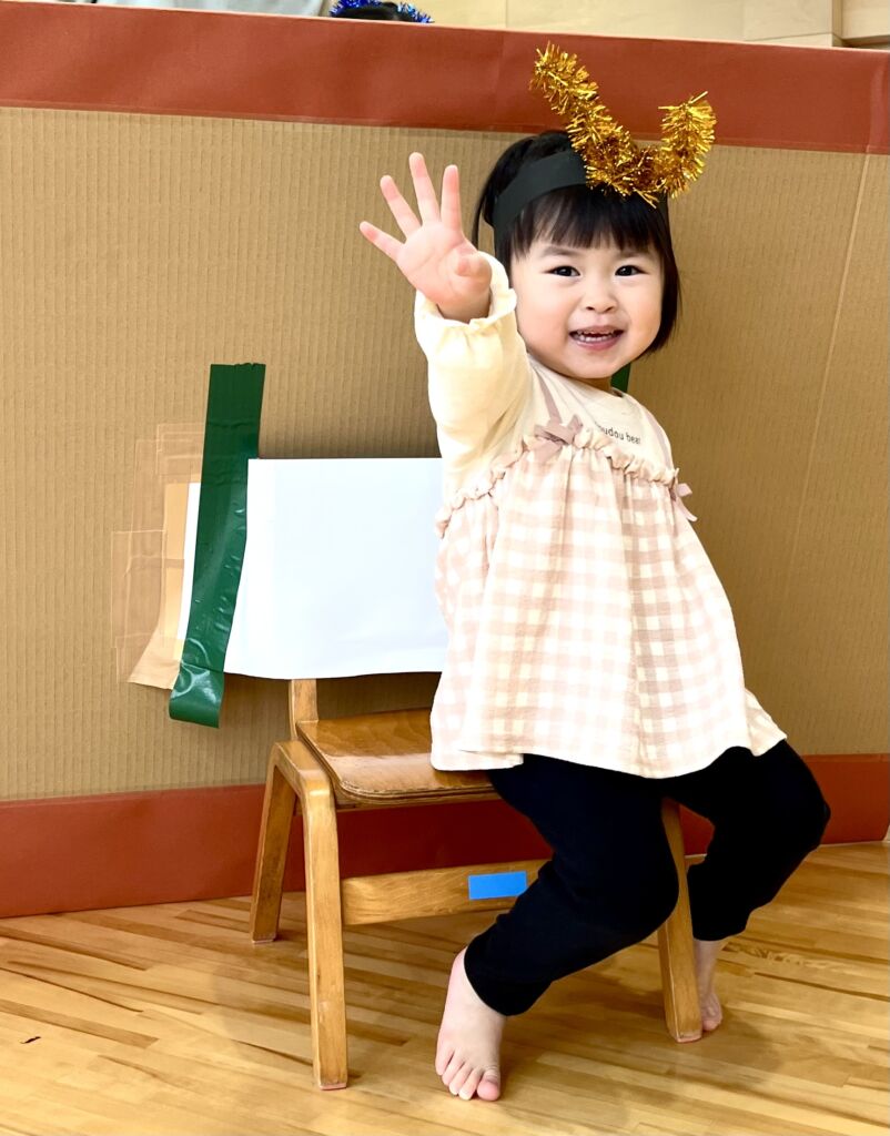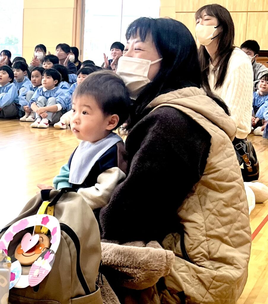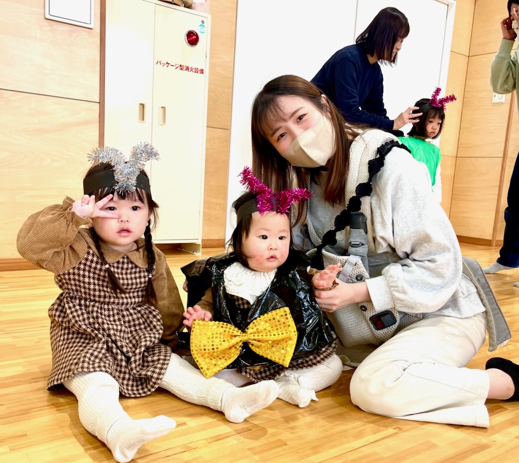 ちびクラ2日目も、年幼児の生活発表会のステージを見てもらいました。1日目よりも年齢が近く、昨年2日目のちびクラの中にはいってこのステージを見ていた園児が何人もいました。親御さんの中には、来年の我が子の姿をイメージしていただく機会となりました。発表を見た後は、ステージ衣装の試着でした。かわいい虫さんが次々と誕生しました。