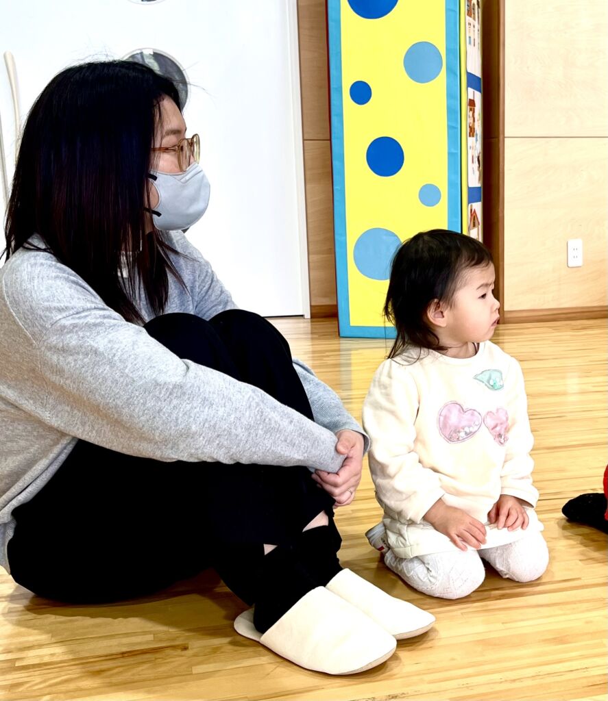 ママは、さんかくすわり