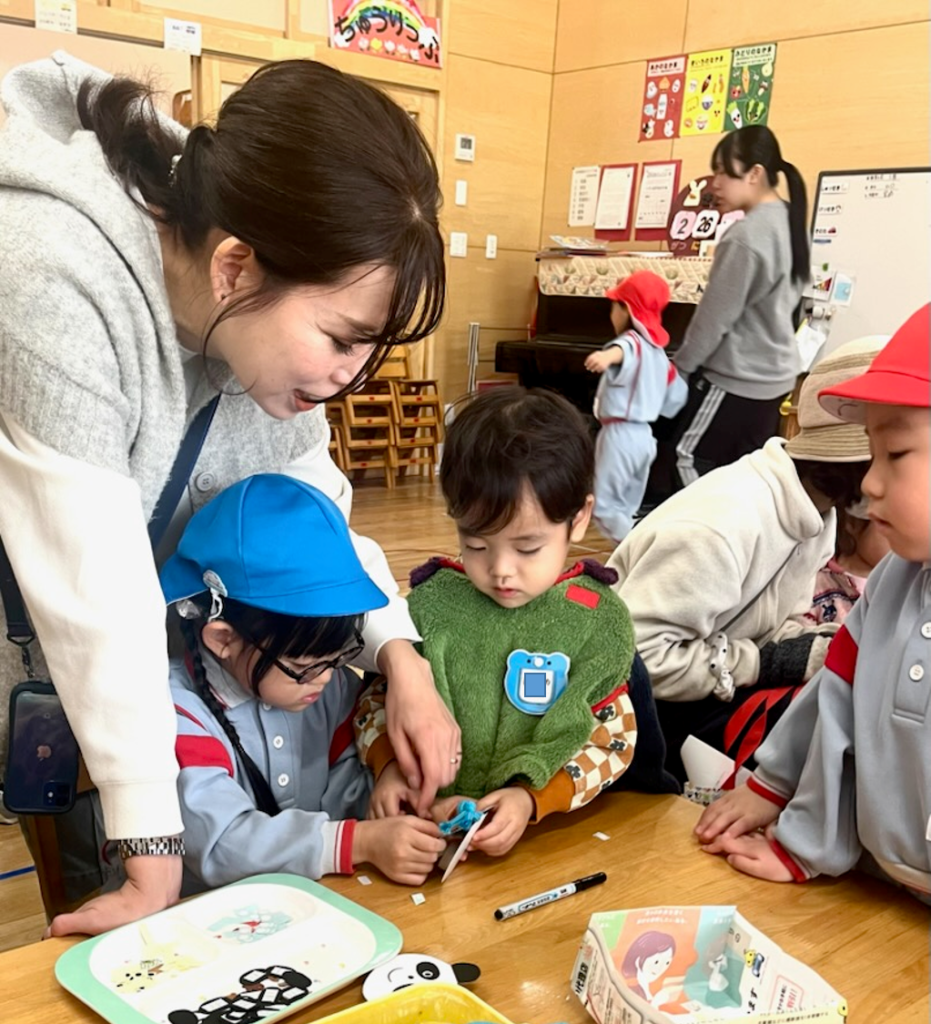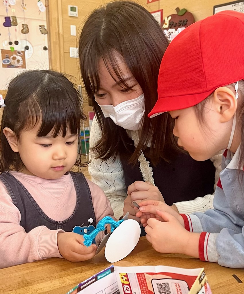 おにいちゃん どう? 年中組 アンパンマンお面づくり