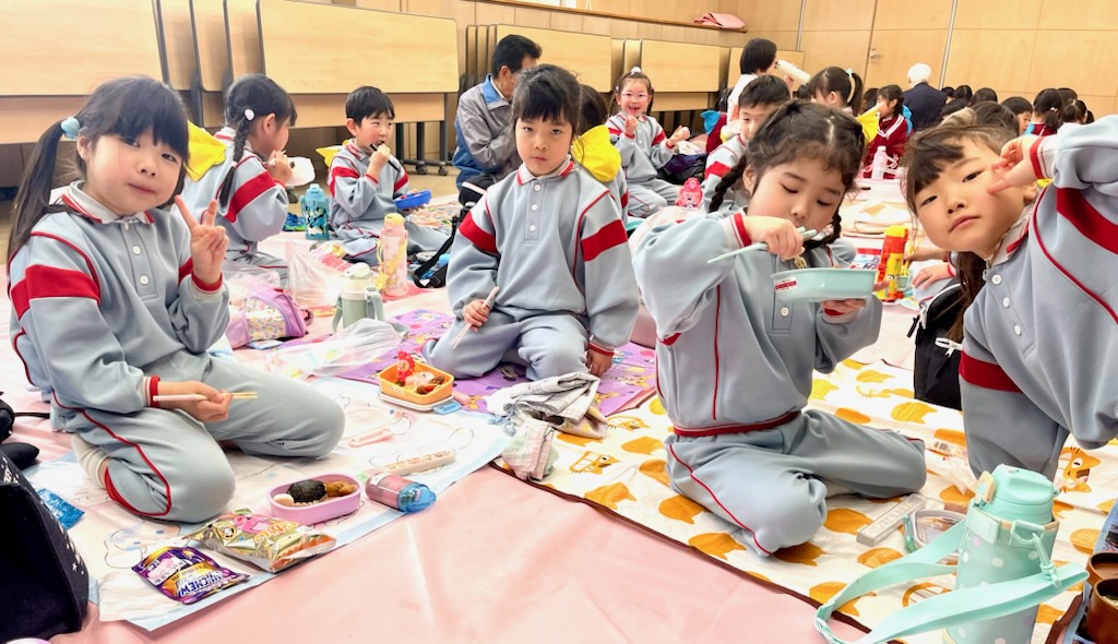 いちご狩りの後 2026.03.06 園長だより 年長 いちご狩りのあとはエンゼルランドへ。ここにも園外保育で何回来たことでしょう。思い出の勝手知ったる場所。お友達とのお弁当も最後となりました。ひとつひとつが終わっていきます。時間いっぱい遊んでけがもなく帰ることが出来ました。運転手さんありがとうございました。 スイカおちてこーい おいしいよー ワタシおにぎり女子 おやつ食べられるかな・・・ おなかいっぱいだけど たのしかったよ~