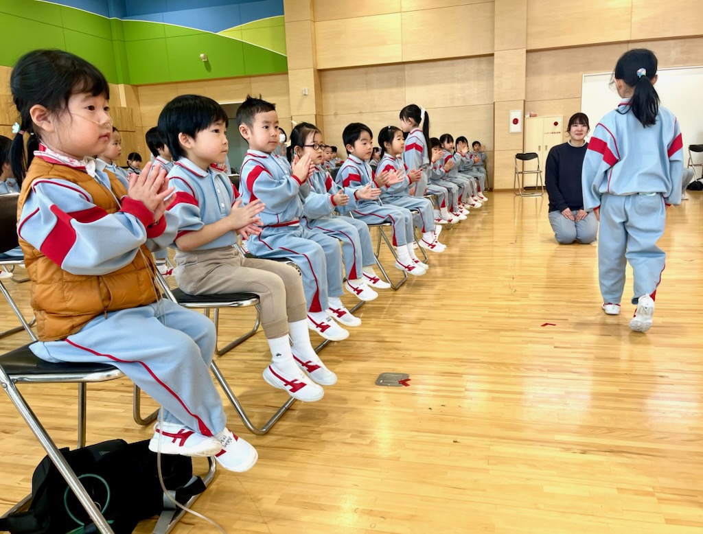 11日(水)は卒園式リハーサルでした。体育館保護者席には年少児と年中児が控える中を卒園児が緊張した面持ちで入場するところから始まりました。いつもの年長児と違うピリッと引き締まった様子を感じ取った年中と年少も、引き込まれるように動きの一つ一つを集中して見ていました。学年末の大きな育ちを感じたリハーサルとなりました。