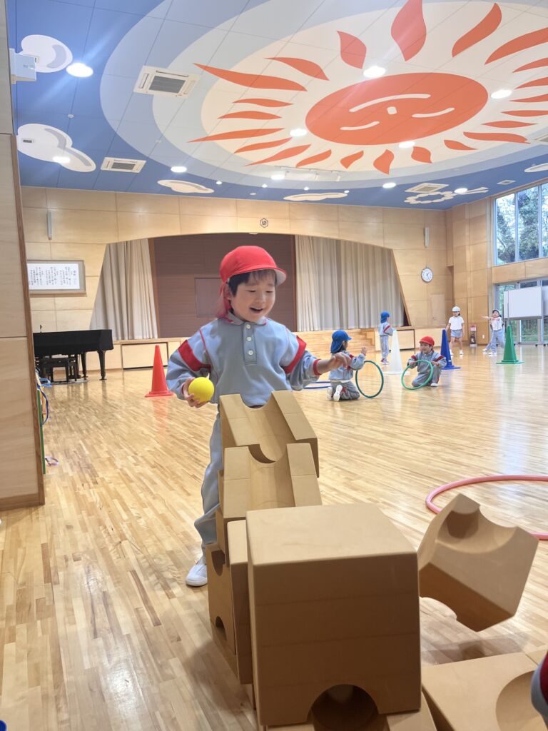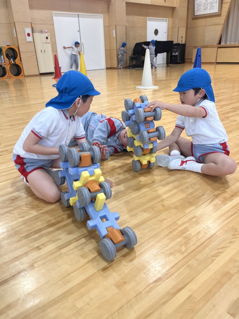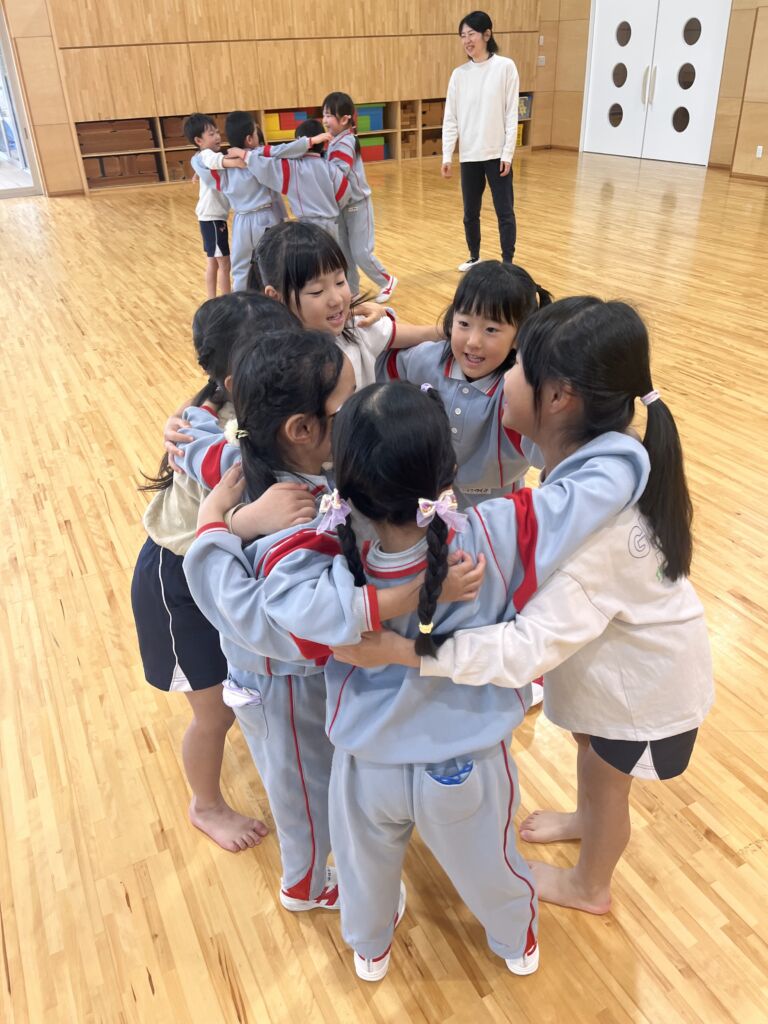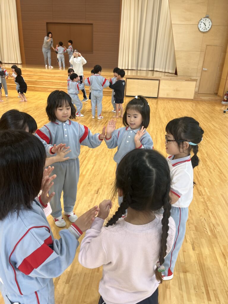 年長は保育園との交流活動が今年も始まり、生憎の天候だった木曜は、幼稚園体育館で思いっきり身体を動かして、汗びっしょりになってお友達になりました。