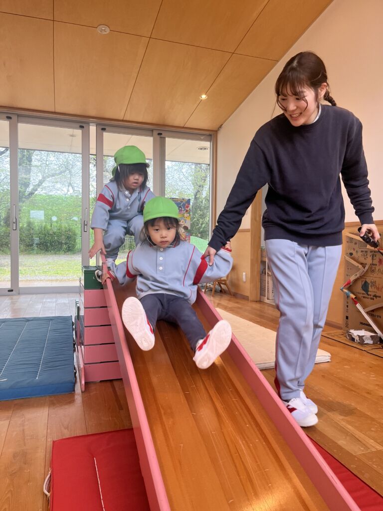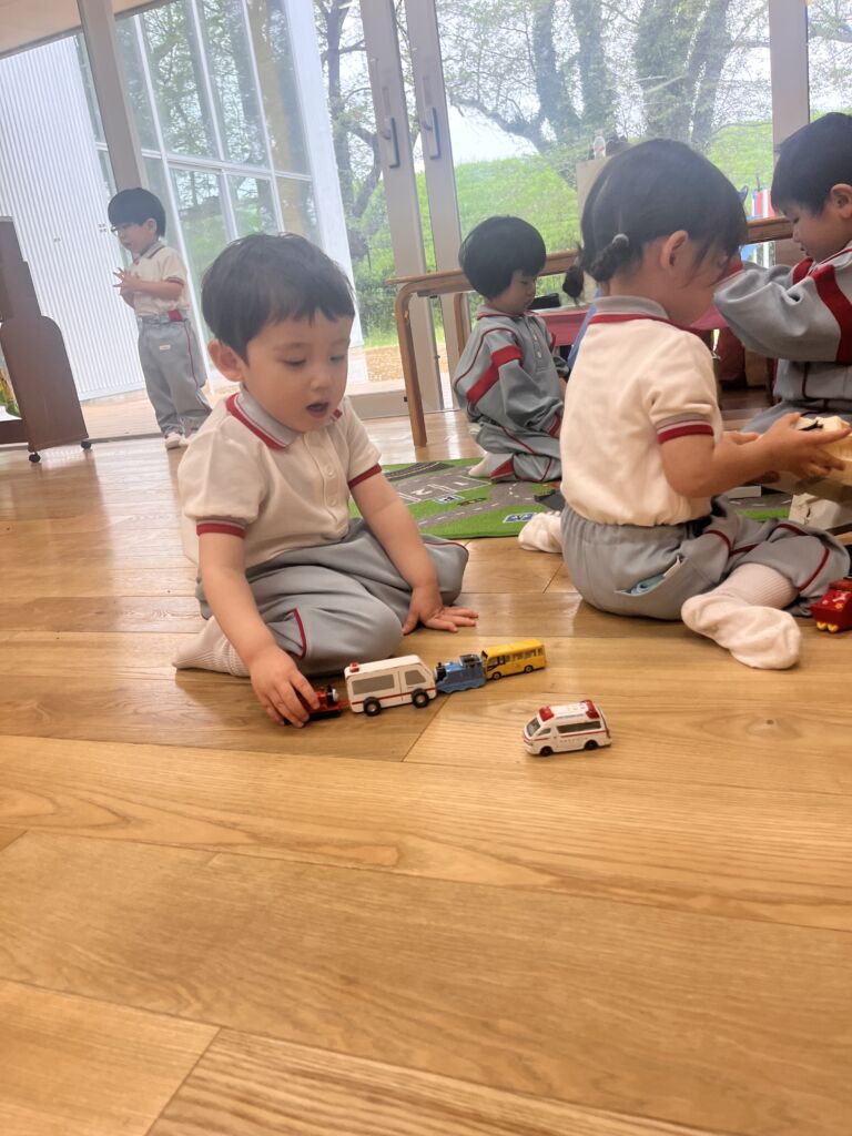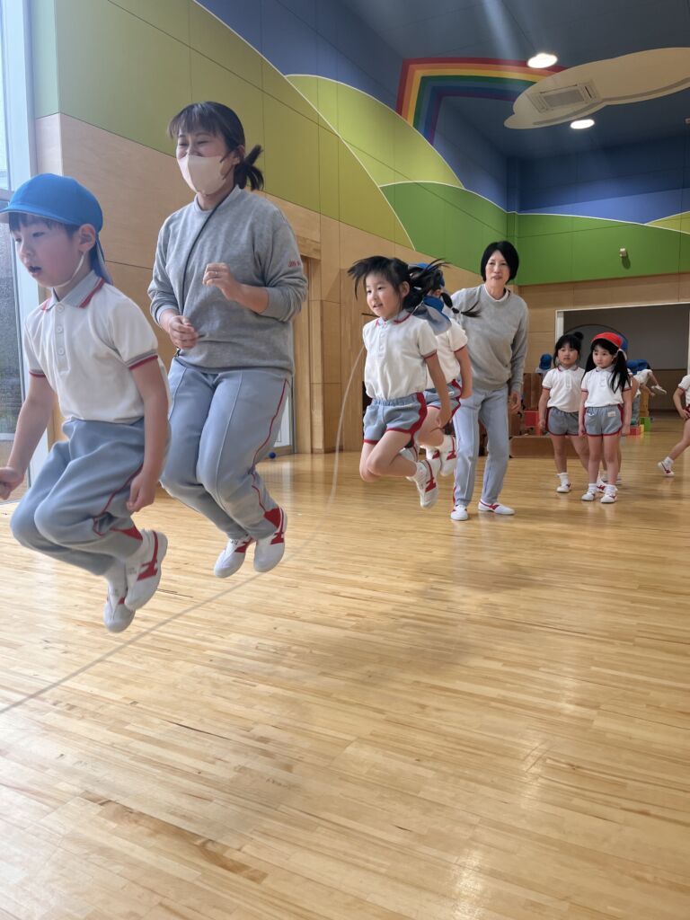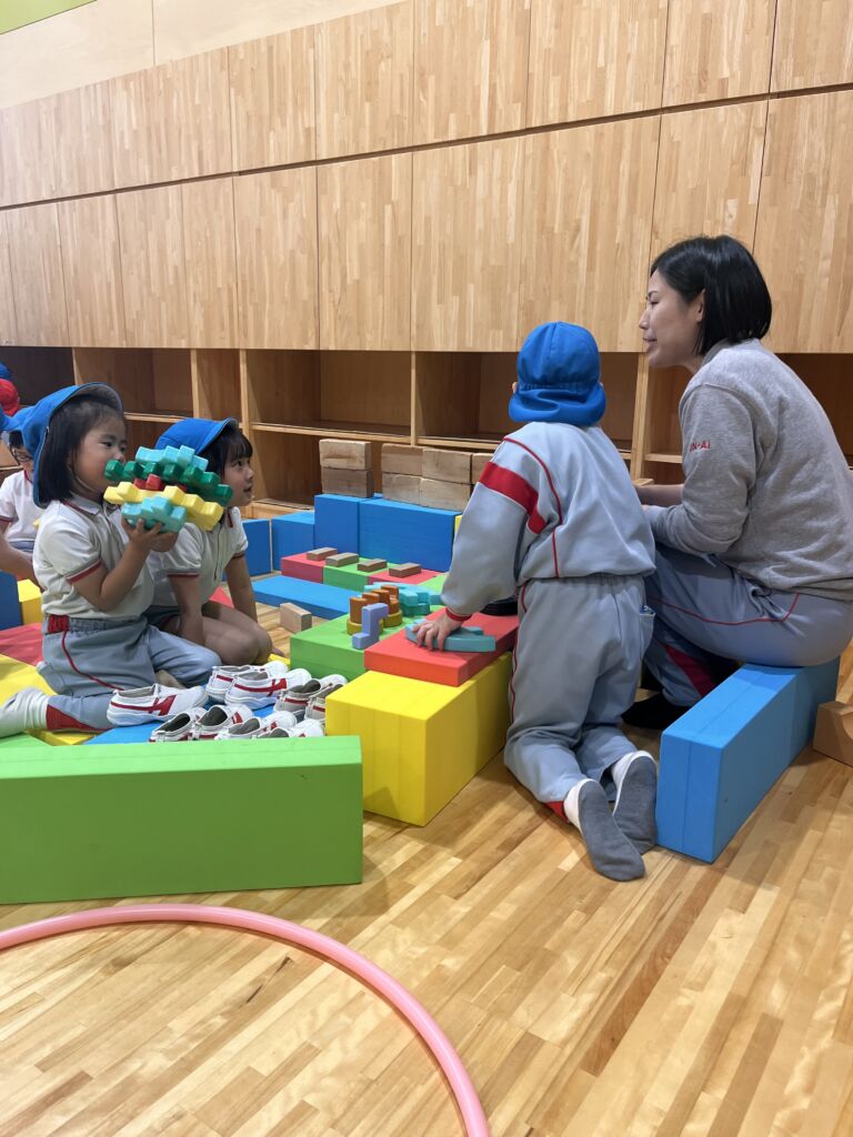 年長は保育園との交流活動が今年も始まり、生憎の天候だった木曜は、幼稚園体育館で思いっきり身体を動かして、汗びっしょりになってお友達になりました。