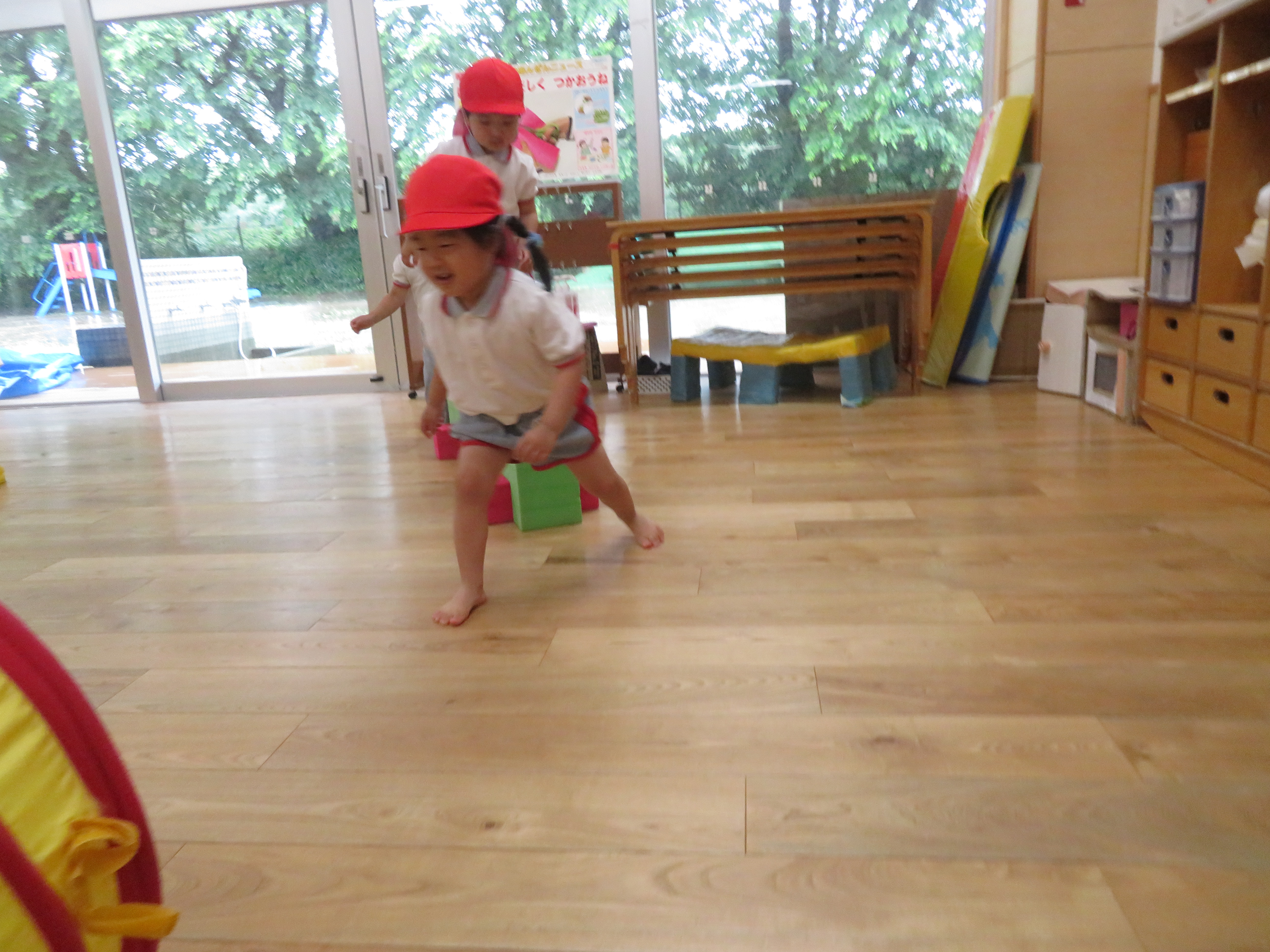 一人ひとり顔が違うように、育つスピードも違います。同じ誕生日に生まれても首が座るのも、ハイハイをするのも同じ日に揃ったりなんかしません。幼稚園もそうですがちびっこクラブでも親御さんはお隣のお子さんと比べてしまいがち。でも、そんなことは何の意味もありません。目の前のお子さんだけを見て、一緒に楽しい時間を過ごしてほしい。それがちびっこクラブです。おうちの方がしっかりついていてくれるから一生懸命遊ぶことができる。幼稚園と大きく違うところです.